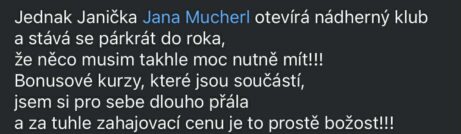 • Skupinové Zoom cally s Janou Mucherl, kde se můžeš na cokoliv zeptat. Prostor pro vedení, vhledy i osobní otázky.