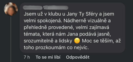 Moc se mi líbí její profesionalita, klid a laskavost. Od začátku roku procházím všemi jejími kurzy. Vnímám u sebe velký posun v běžném životě. Naučila jsem se zpomalit, vnímat své potřeby a srovnat si myšlenky na moji původní rodinu. Kurz doporučuji všem koho Janina nabídka osloví. Budete mile překvapeni. ❤️